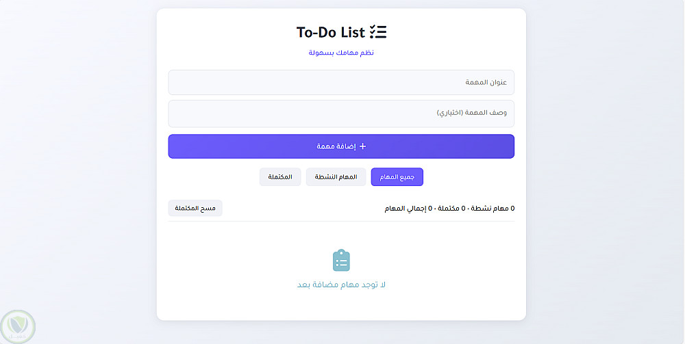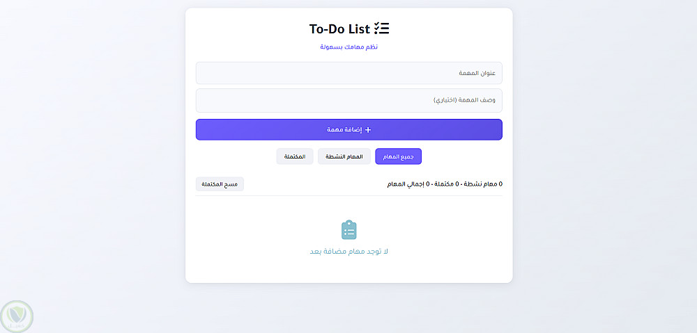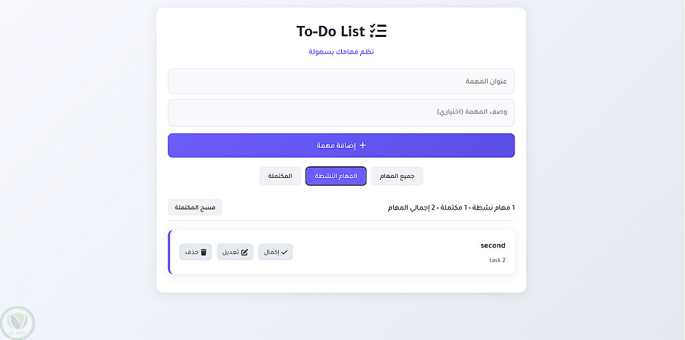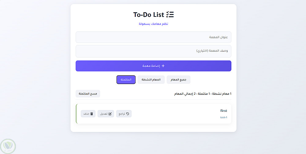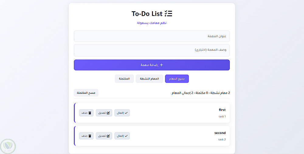 قائمة المهام باستخدام جافا اسكريبت تسمح بإضافة المهام، وتحريرها، وحذفها، بالإضافة إلى إمكانية تحديد المهام المنجزة.