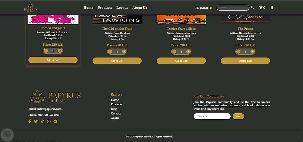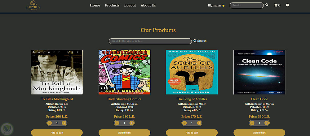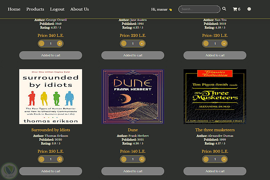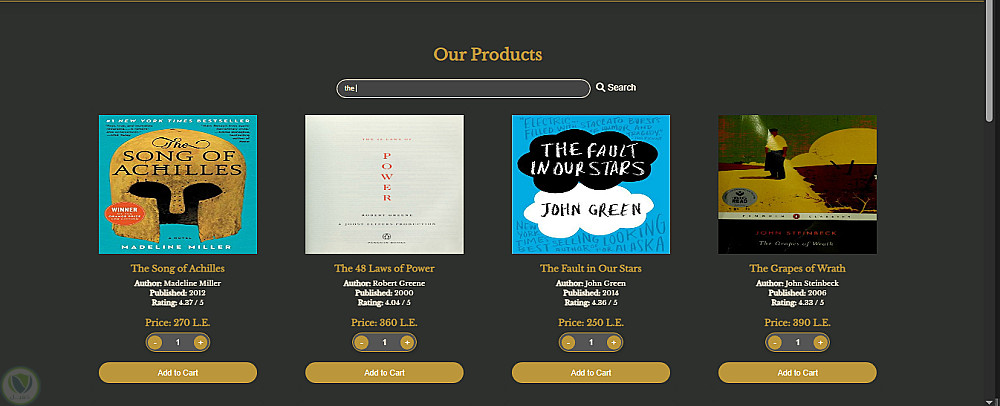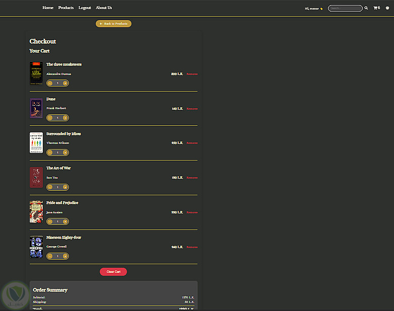 قمت بتطوير موقع إلكتروني لبيع الكتب يحتوي على واجهة مستخدم جذابة وسهلة الاستخدام. يتيح الموقع للمستخدمين تصفح مجموعة متنوعة من الكتب، والبحث عنها، وقراءة تفاصيل كل كتاب، مع إمكانية إضافتها إلى سلة المشتريات، والتحكم في الكمية أو حذفها، ثم استعراض الطلب في صفحة الدفع (Checkout).