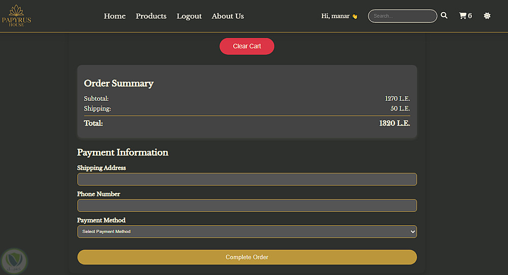 تم تطوير الموقع باستخدام HTML، CSS، وJavaScript فقط، مع تخزين بيانات المنتجات والسلة في Local Storage لضمان بقاء البيانات محفوظة حتى بعد تحديث الصفحة. تم تصميم تجربة المستخدم لتكون بسيطة واحترافية، مع سلة جانبية تظهر عند الضغط على الأيقونة وتعرض المنتجات المضافة بشكل فوري.