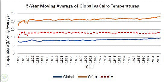 استكشاف تغيرات درجات الحرارة في القاهرة مع المتوسط العالمي