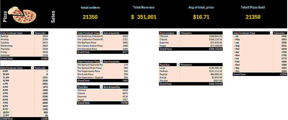 قمت بتصميم لوحة تحكم تحليلية لمبيعات محل بيتزا باستخدام برنامج Microsoft Excel بالاعتماد على Pivot Tables وصيغ متقدمة، بهدف توفير تحليل مرن وسهل الاستخدام لبيانات المبيعات اليومية.