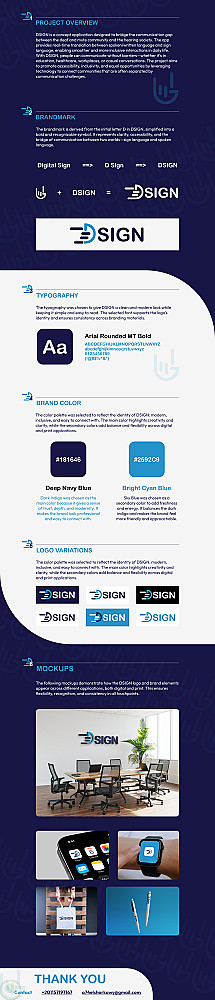 قمت بتصميم شعار لتطبيق DSign، وهو تطبيق لا يزال في مرحلة الفكرة والتطوير، يهدف إلى تسهيل التواصل بين لغة الإشارة واللغة المنطوقة، مما يجعل العالم أكثر شمولية ووضوحًا.