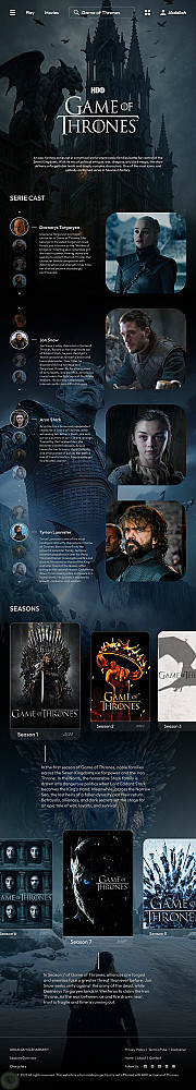 قمت بتصميم صفحة هبوط (Landing Page) مستوحاة من الأجواء الدرامية لمسلسل Game of Thrones. ركزت في التصميم على تقديم تجربة بصرية جذابة من خلال توزيع متناسق للعناصر، اختيار ألوان متوافقة مع طابع المسلسل، وإبراز التفاصيل بطريقة تعكس قوة وجاذبية العمل.