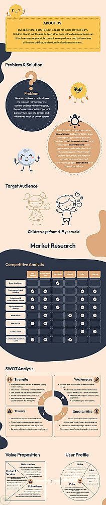 مشروعنا الجماعي يهدف إلى ابتكار تجربة آمنة وشيقة للأطفال تمزج بين التعليم والترفيه في بيئة رقمية مصممة خصيصًا لهم. بدأنا العمل من خلال أبحاث معمقة مع أولياء الأمور لفهم مخاوفهم واحتياجاتهم الحقيقية، سواء فيما يتعلق بسلامة المحتوى أو بمدى فاعلية التطبيق في دعم نمو الطفل وتطوير مهاراته.