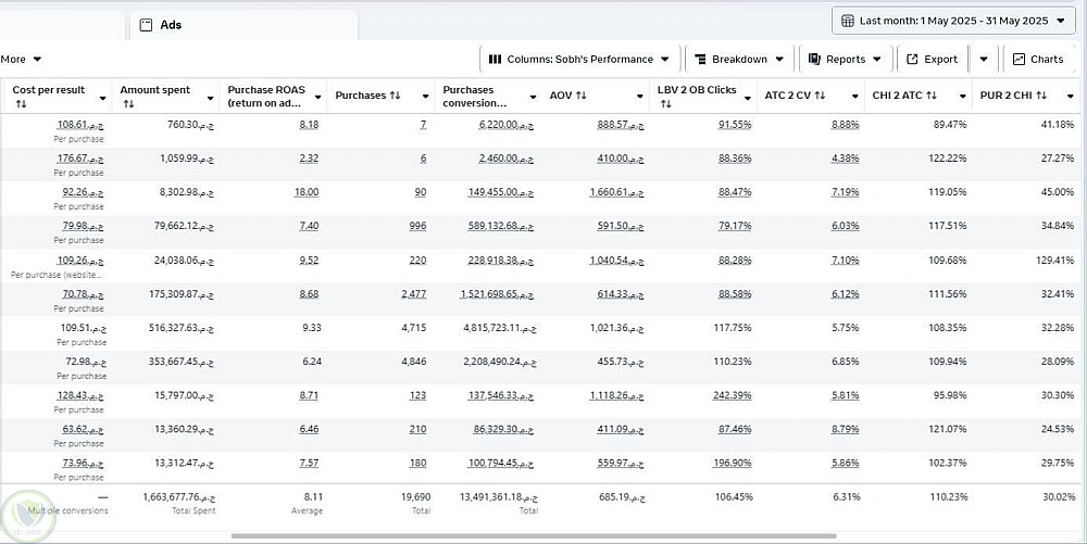 نتائج بعض الحملات الإعلانية على منصة فيسبوك وانستقرام