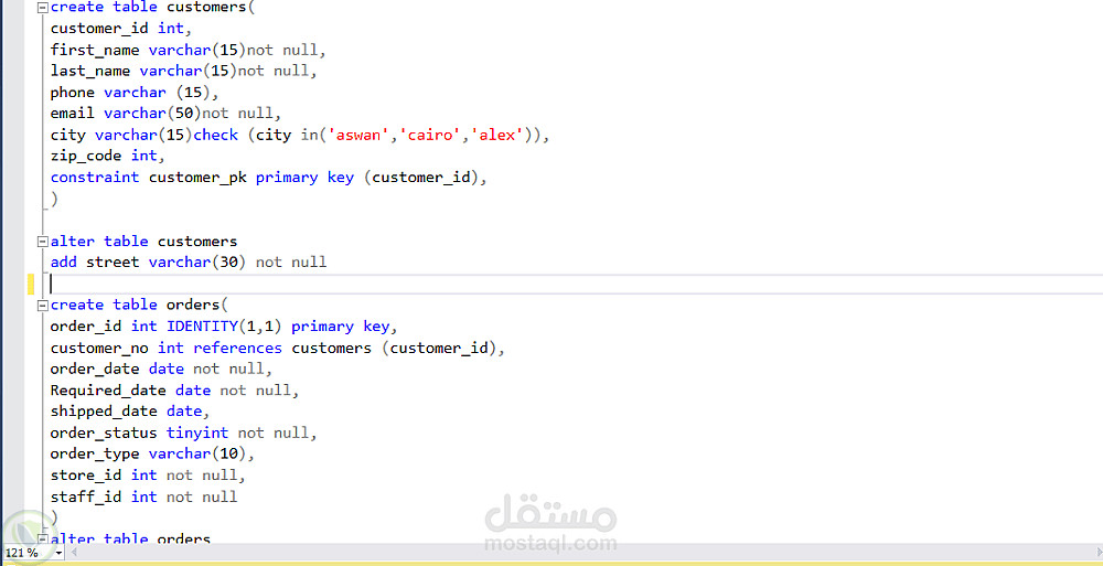 مع وضوح primary keys فى الجداول وربط بين الجداول بطريقة صحيحة