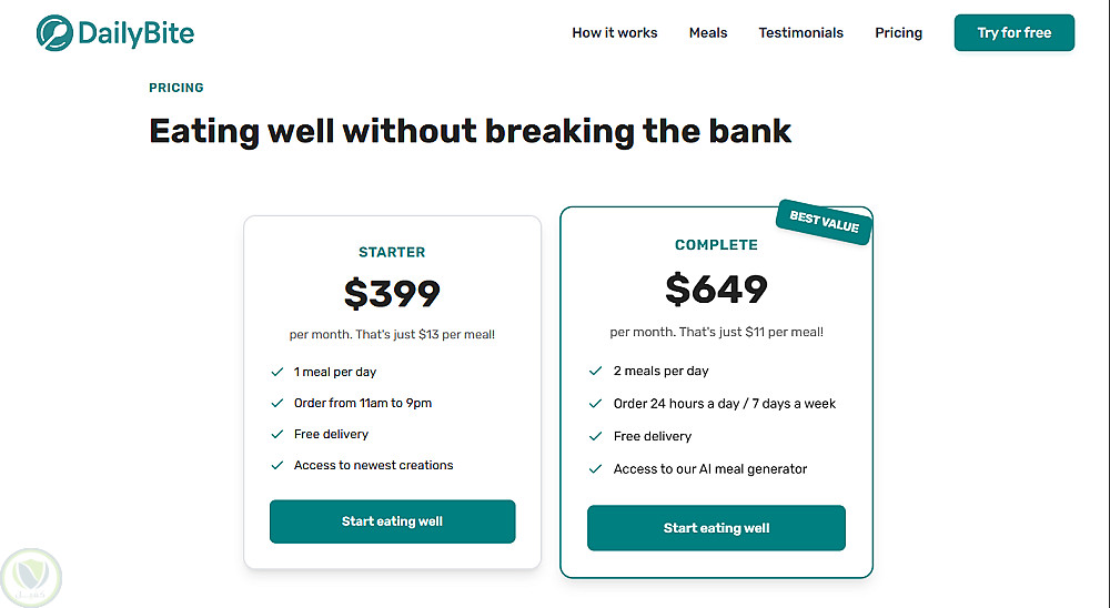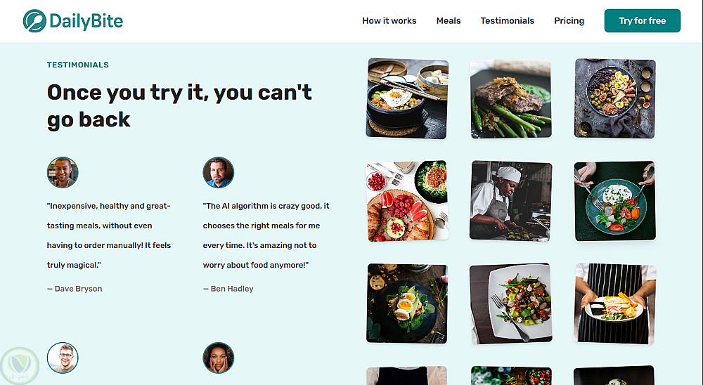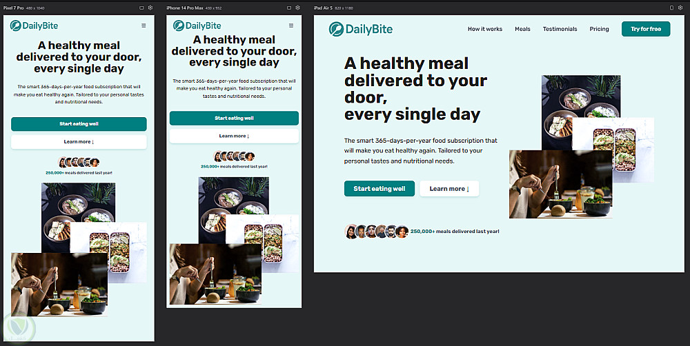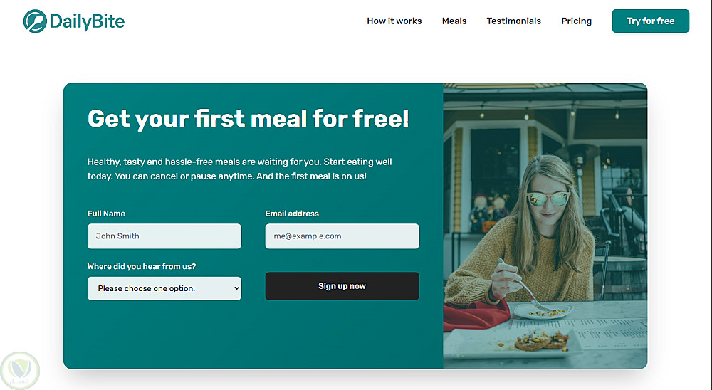 صفحة هبوط عصرية ومميزة لتطبيق اشتراك يقدم خدمة توصيل الوجبات اليومية. الهدف من الصفحة هو إبراز سهولة استخدام التطبيق وجذب العملاء للاشتراك.