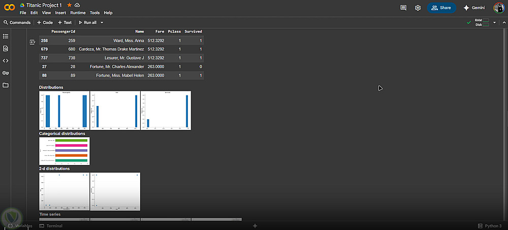 تم تحليل مجموعة بيانات تيتانيك باستخدام Pandas وMatplotlib وSeaborn للكشف عن أنماط البقاء على قيد الحياة.