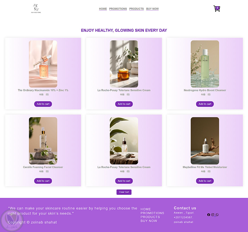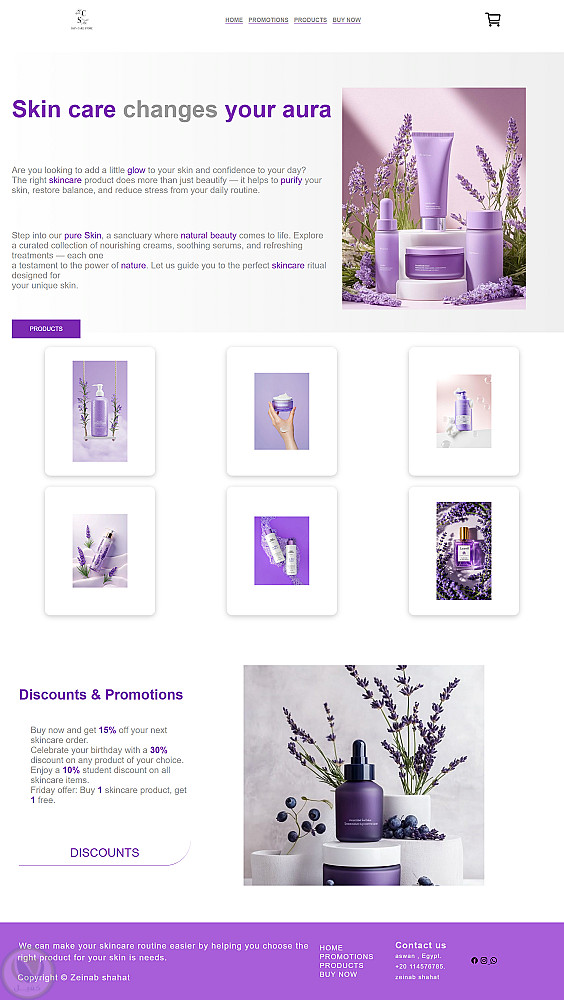 قمت بتصميم وتطوير واجهة ويب أنيقة وتفاعلية لموقع منتجات العناية بالبشرة، باستخدام HTML & CSS & JavaScript، مع التركيز على إبراز جمال المنتجات وتقديم تجربة مستخدم سلسة وعصرية.