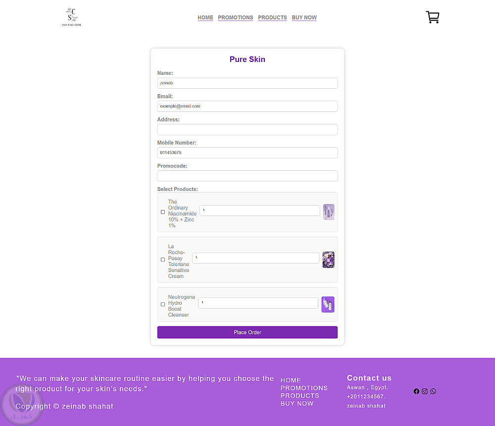 نموذج طلب المنتجات (Order Form) بسيط وسهل الاستخدام لإتمام عملية الشراء.