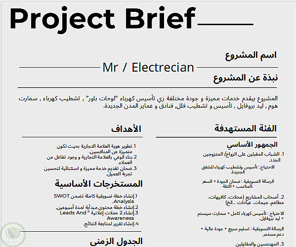 الـ Brief مكتوب بالكامل بجهدي الشخصي، والنتيجة كانت مستند مرتب، شامل، وسهل الاستخدام يضع المشروع على بداية صحيحة نحو النجاح.