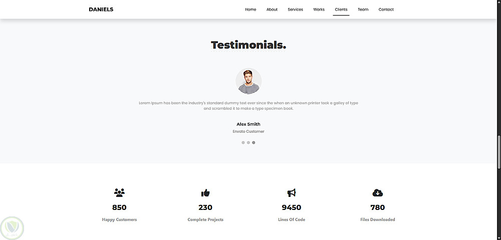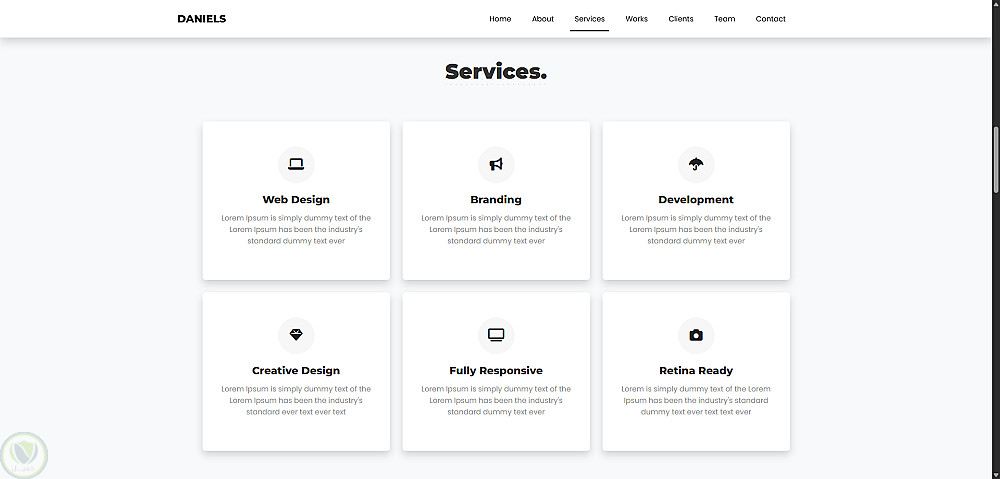 قمت بتطوير موقع Portfolio Template باسم Daniels باستخدام HTML, CSS, Bootstrap.