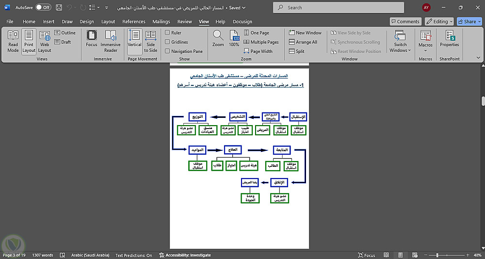 اعادة تنسيقوكتابة ملف عن مسارات المرضي في عيادات الاسنان عل برنامج الword لعميل يعمل في مستشفي اسنان مع اضافة مخططات لكل مسار