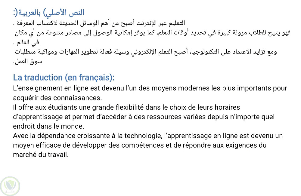 نص فى منهج جامعى كان مطلوب فية ترجمة القطعة من العربية اللى الفرنسية