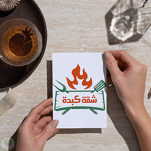 لوجو بسيط لمطعم اكلات شعبي اسمه شقة كبدة .. الوانه البرتقالي والاخضر بناء ع طلب العميل .. مع سلوجن بسيط يعبر عن المطعم