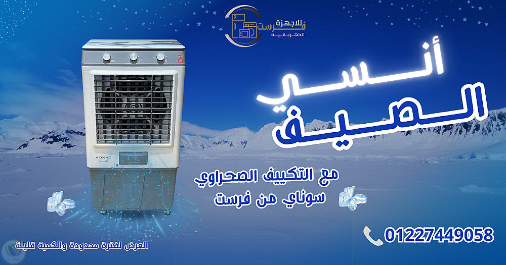 تصميمات سوشيال ميديا لمحل فرست للاجهزة الكهربائية .. الديزاين عن تكييف صحراوي مع وضع لوجو المحل