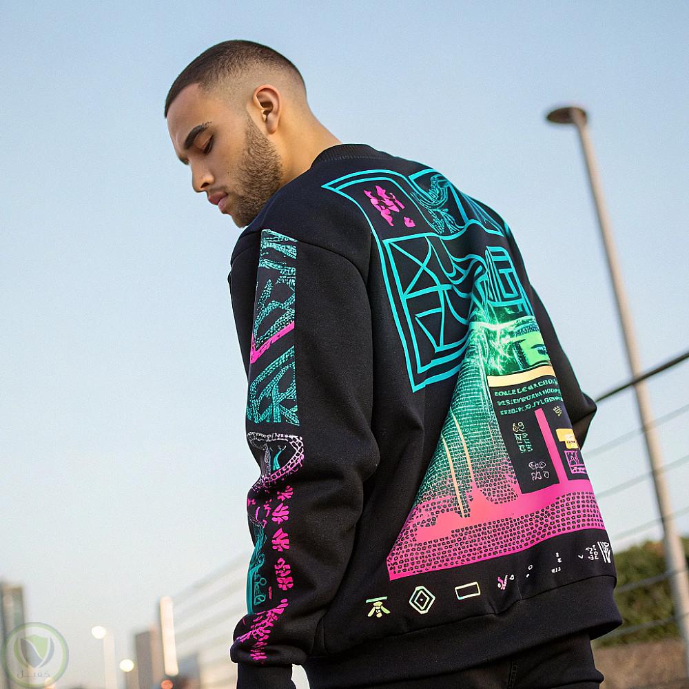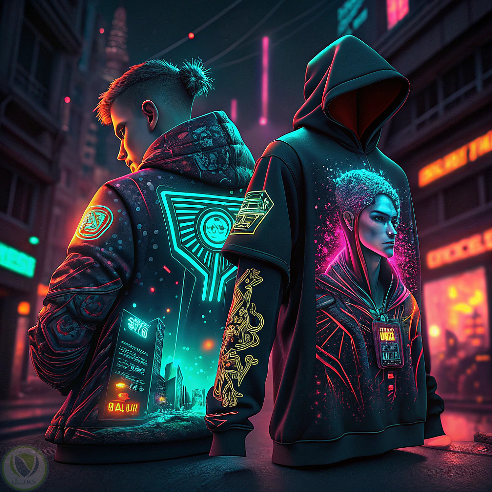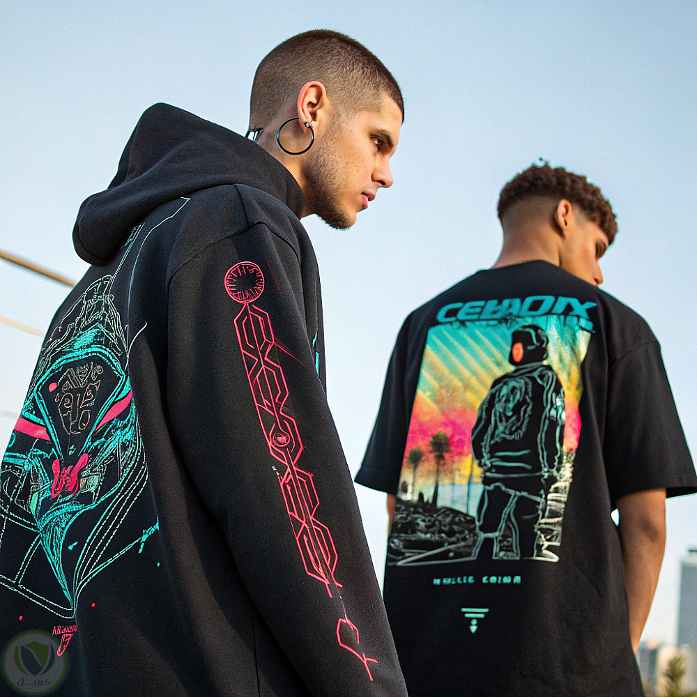 Digital Effects & Textures: لإضافة لمسات عصرية على الملابس مثل الـ cyberpunk أو الـ streetwear style.
