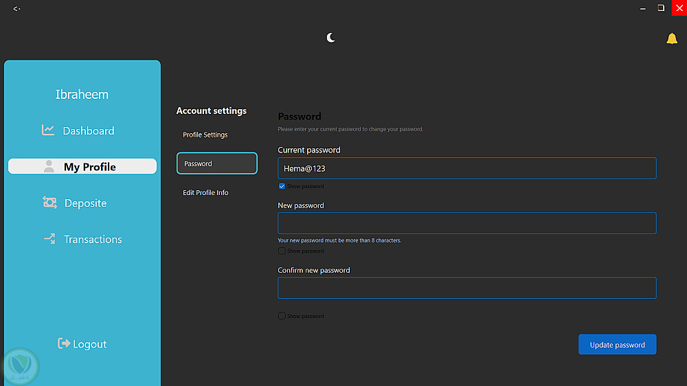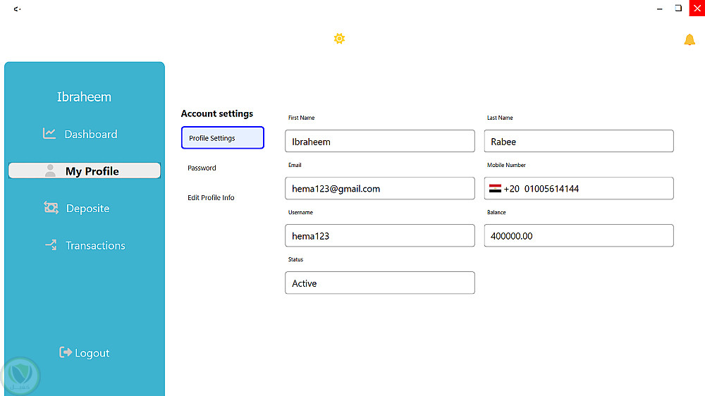 حفظ البيانات: الاعتماد على ملفات Text لتخزين واسترجاع بيانات الحسابات والمعاملات بشكل منظم.