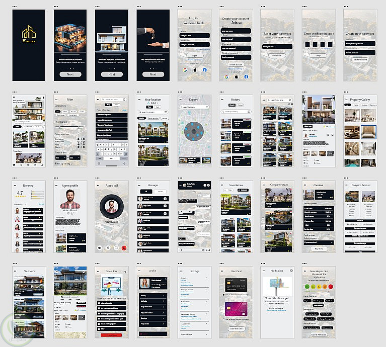 قد تم تصميم برنامج للعقارات باستخدام برنامج XD مع مراعاتي لتجربة المستخدم وسهولة وصول المستخدمين