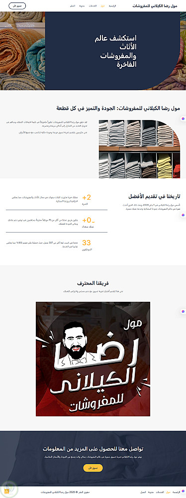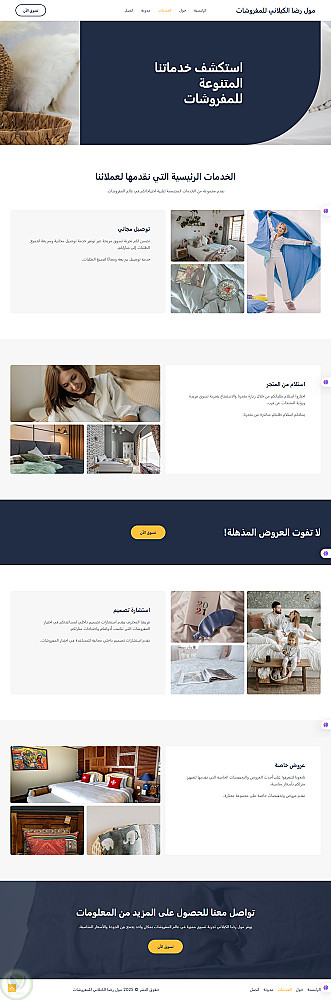 قمت بتصميم وتطوير موقع عصري لمول رضا الكيلاني للمفروشات في مصر، مع التركيز على: