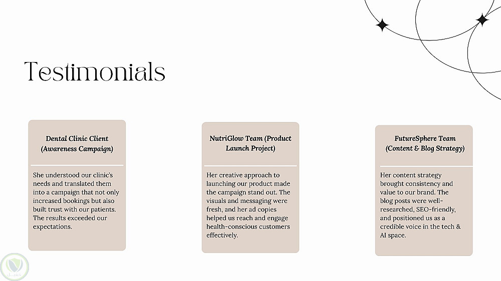 مجموعة من المشاريع التي تعرض مهاراتي في التسويق عبر وسائل التواصل الاجتماعي، والإعلانات الممولة، واستراتيجيات المحتوى. تشمل حملات متعددة المنصات، وإطلاق منتجات جديدة، ومحتوى مُحسَّن لمحركات البحث ساهم في زيادة التفاعل، ورفع مستوى الوعي، وتعزيز ثقة العلامة التجارية.