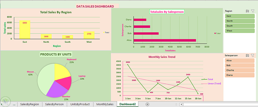 لوحة تحكم لبيانات المبيعات باستخدام Excel