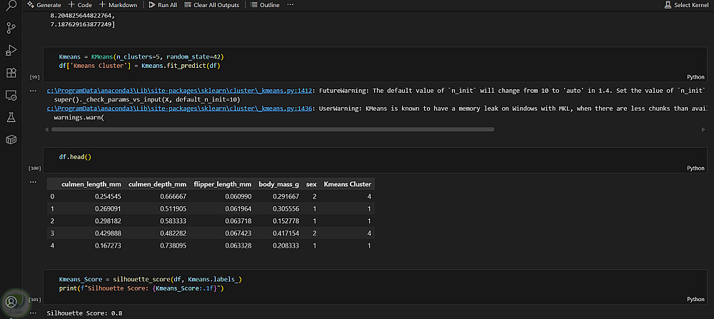 نجحت K-Means في تجميع البطاريق في مجموعات مميزة تُشبه حدود الأنواع.