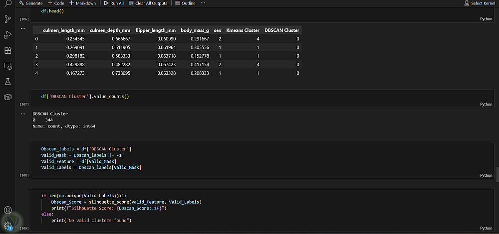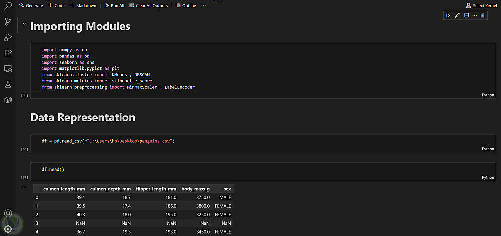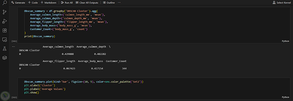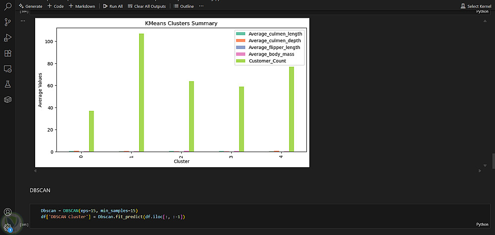تقنيات التجميع: تطبيق خوارزميات K-Means وDBSCAN لتحديد المجموعات الطبيعية في مجموعة البطاريق.
