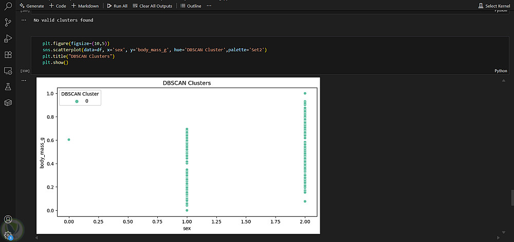 ساعدت DBSCAN في الكشف عن التشوهات/القيم الشاذة، مما وفّر رؤىً حول العينات النادرة أو الفريدة.