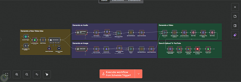 نظام عمل آلي متكامل لإنتاج فيديوهات جديدة ورفعها تلقائيًا على منصة يوتيوب،