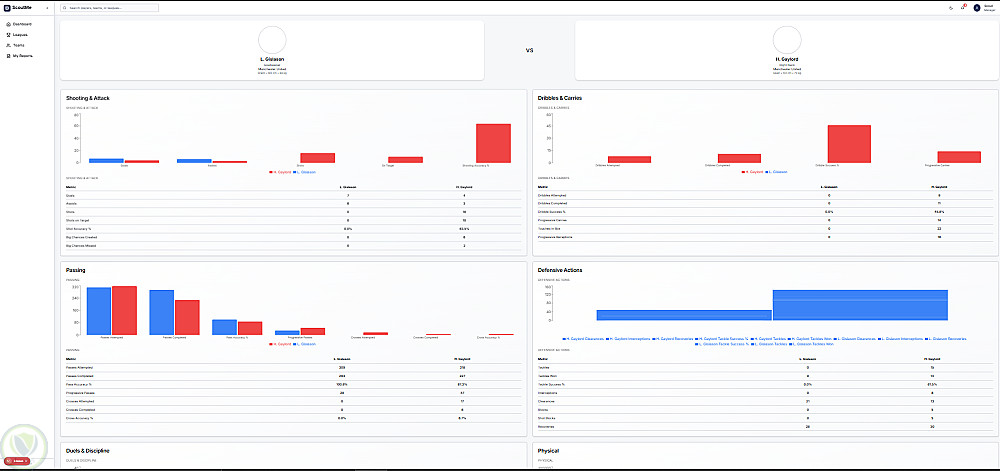 تحليل فردي وجماعي يعتمد على الإحصائيات الدقيقة مثل التمريرات والتسديدات والتحركات.