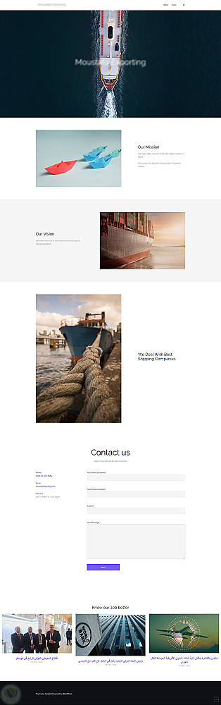 موقع إحترافي و مدونة لمكتب إستيراد و تصدير بمدينة طنطا محافظة الغربية فى مصر. الموقع يختوى على صفحة الصفحة الرئيسية و هى صفحة هبوط من نوع one-page و مدونة ووردبريس مع إضافة yoast seo لضمان وصول المقالات لرانك عالى على جوجل.