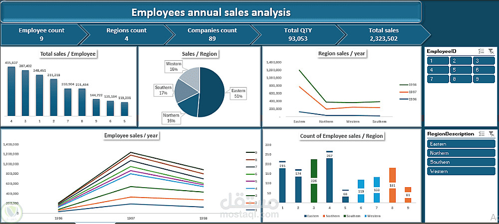Employee sales performance dashboard