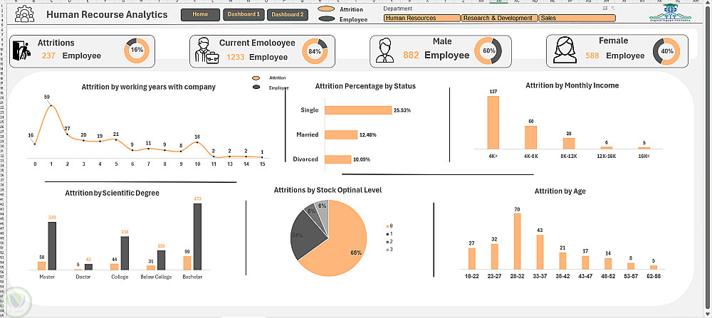 تحليل بيانات الموارد البشرية لقياس معدل الاستقالات (HR Attrition Analysis Dashboard)