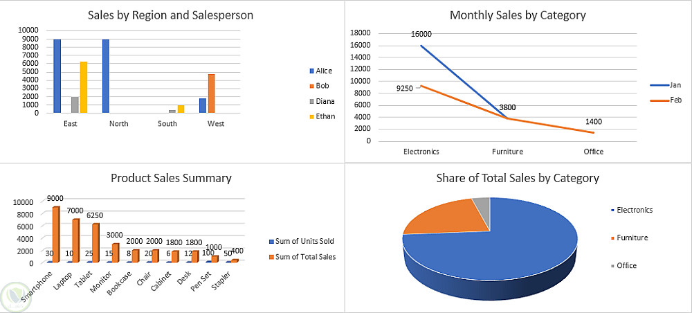 تعتمد على Pivot Tables وPivot Charts لعرض: