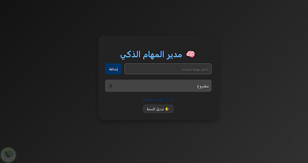 هو تطبيق ويب بسيط وأنيق لإدارة المهام اليومية، يسمح للمستخدم بإضافة المهام، تعديلها، تحديد المهام المنجزة، وحذف المهام المنتهية.