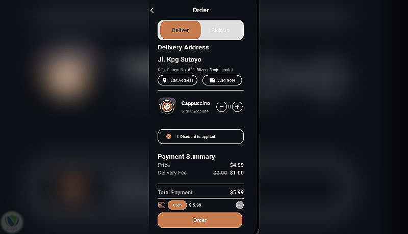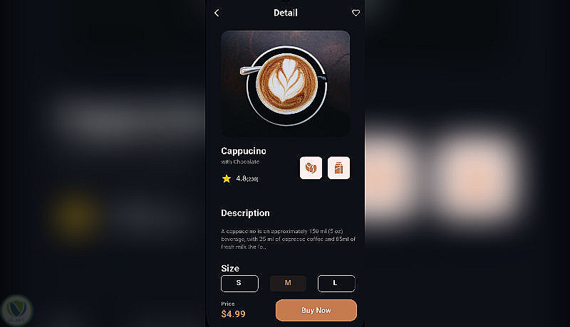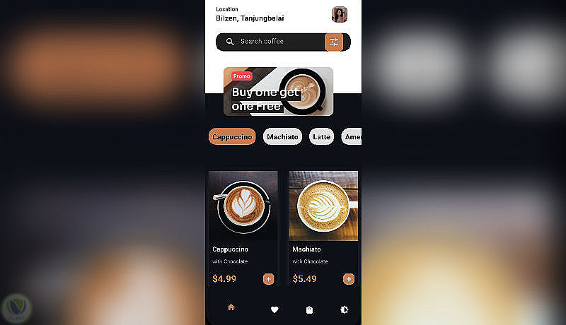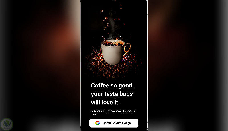 تطبيق موبايل أنيق يعرض واجهة مقهى عصرية بتصميم جميل وعناصر تفاعلية جذّابة.