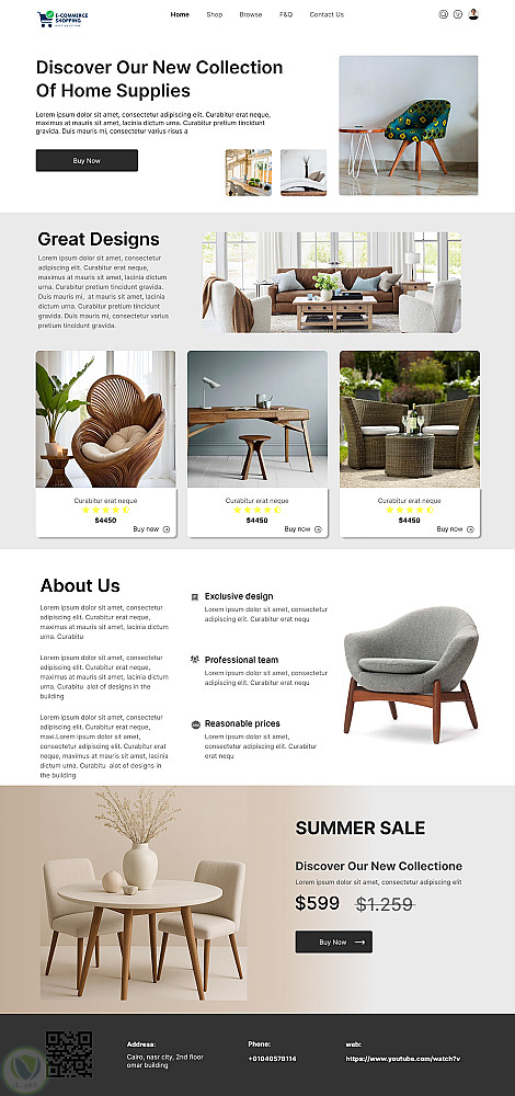 تصميم واجهة مستخدم لصفحة تجارة الكترونية لبيع الاثاث