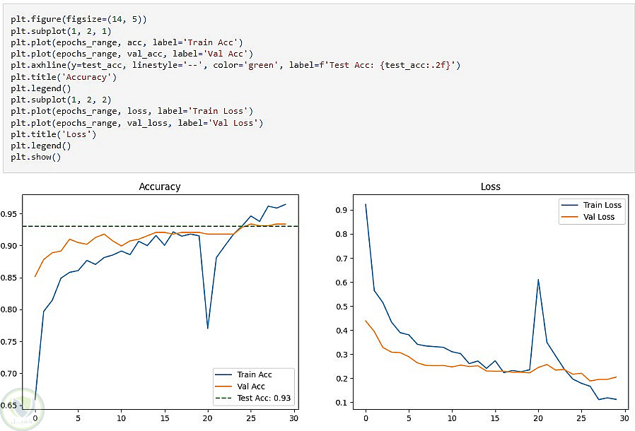 تم بناء النموذج باستخدام TensorFlow وKeras مع تطبيق استراتيجيات مثل تحسين الصور (Augmentation) وإيقاف التدريب المبكر (Early Stopping) لضمان أفضل أداء ممكن.