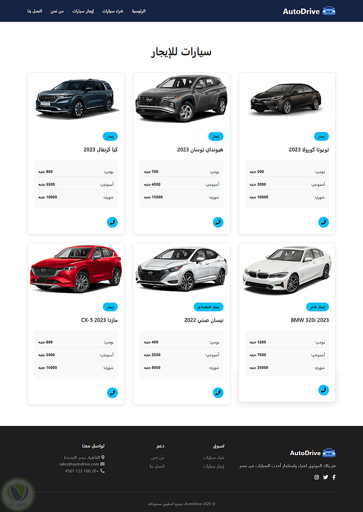 الهدف من الموقع هو تسهيل عملية تصفح السيارات والاختيار بين الشراء أو الإيجار بطريقة احترافية وسريعة على مختلف الأجهزة.