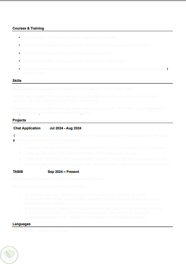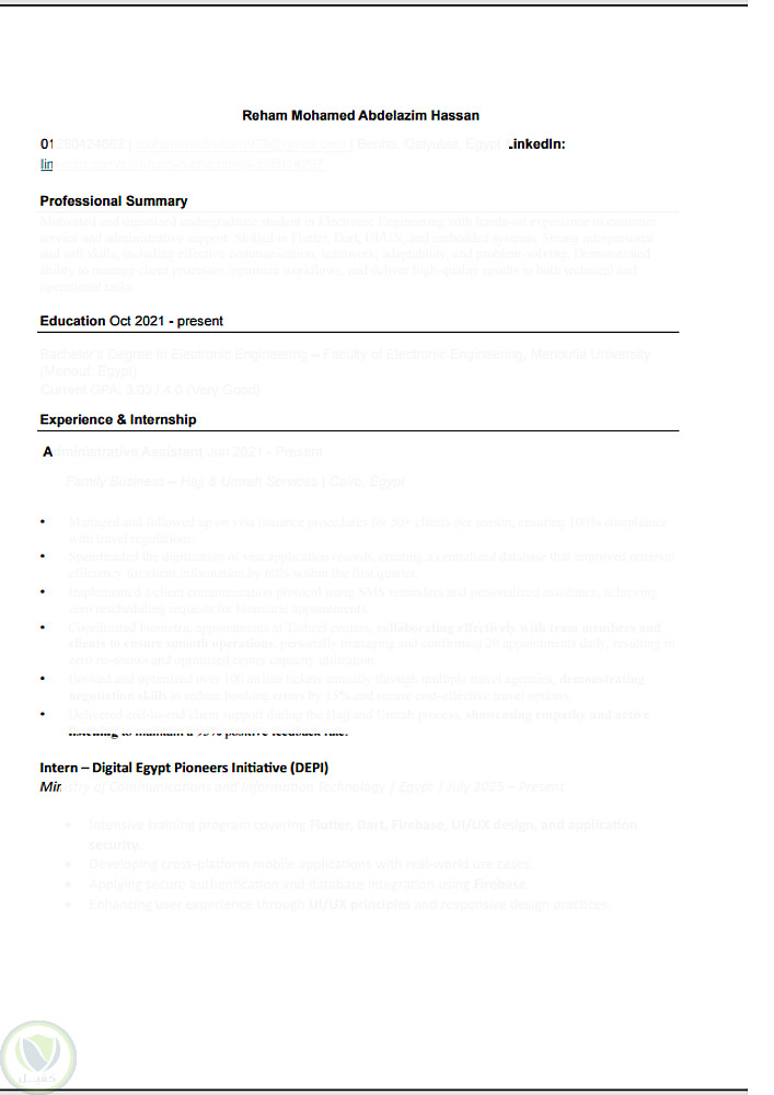 تم مراعاة الوضوح والتنسيق البصري لجعلها مناسبة لأنظمة ATS.