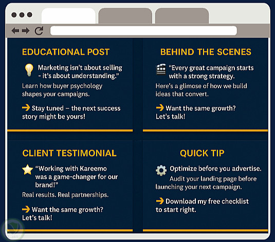 • أدرت حملة محتوى وإعلانات 360° لخدمات الاستشارات الهندسية، بتوزيع ذكي للميزانية بين Meta / Google / قنوات عضوية محققة ROI 4.7x.