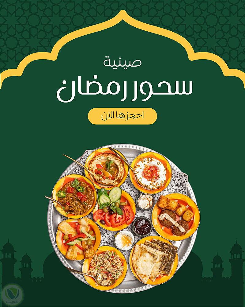 تصميم منشور إعلاني مميز لعرض وجبات سحور رمضان بطريقة جذابة ومريحة للعين.