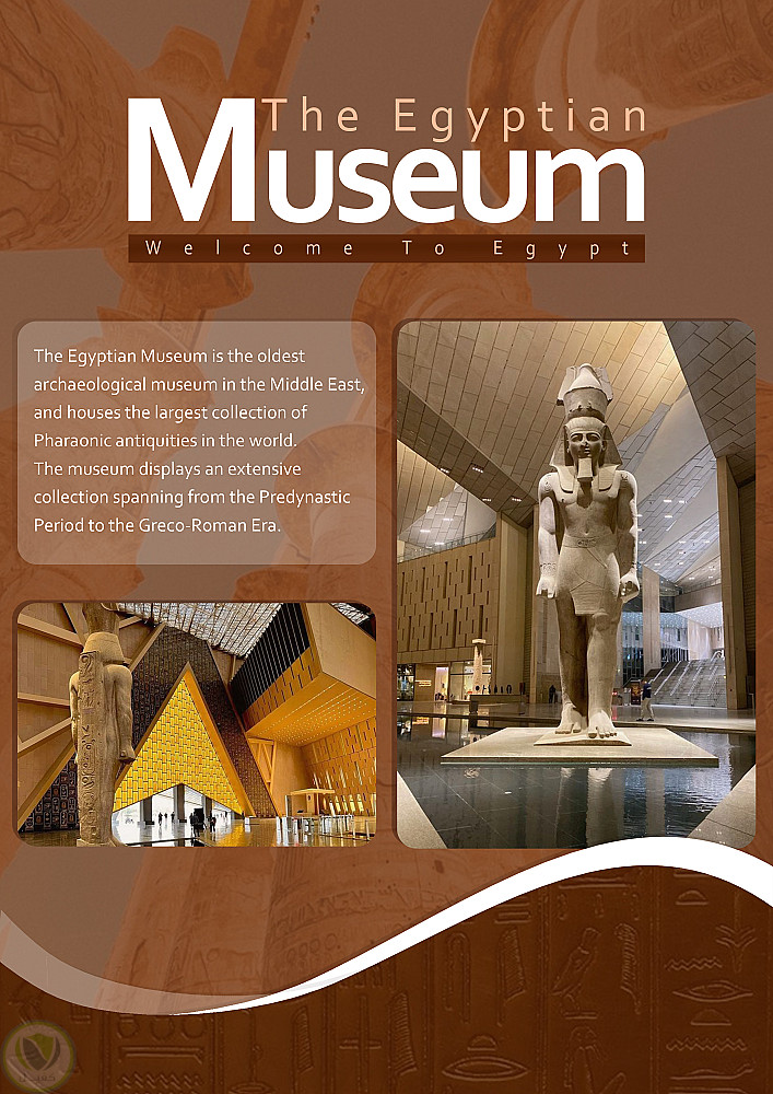 تصميم بوستر دعائي للمتحف المصري، بيعكس الطابع الحضاري والتاريخي من خلال استخدام ألوان وعناصر بصرية مستوحاة من الفن الفرعوني. الهدف من التصميم هو جذب الزوار وإبراز الهوية الثقافية المصرية بشكل احترافي وجذاب.