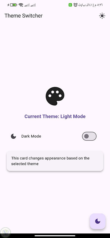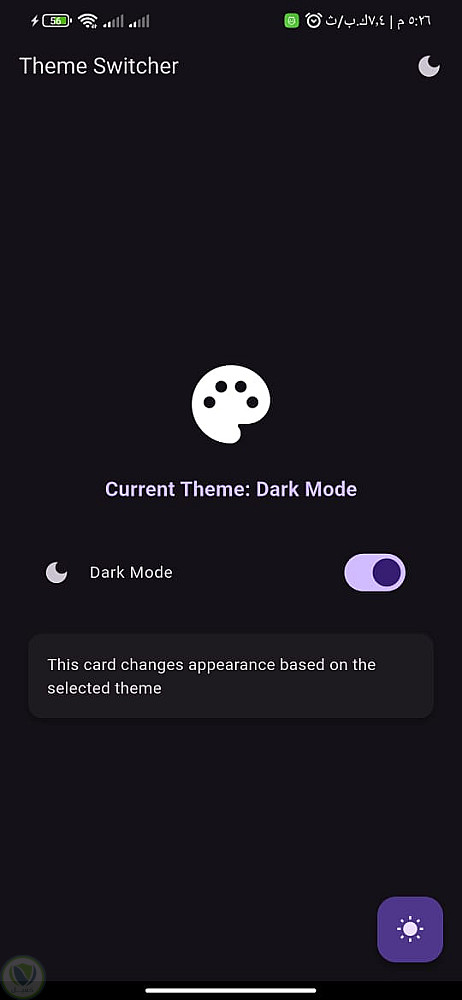 مشروع Flutter لإدارة السمات الفاتحة والداكنة باستخدام Provider.