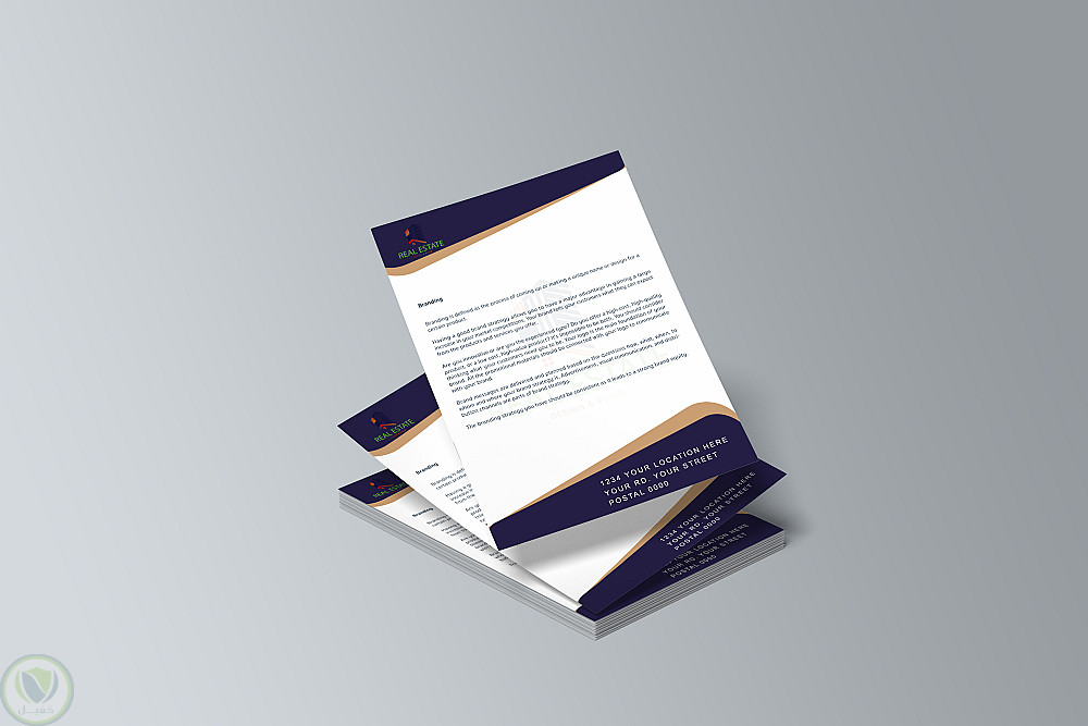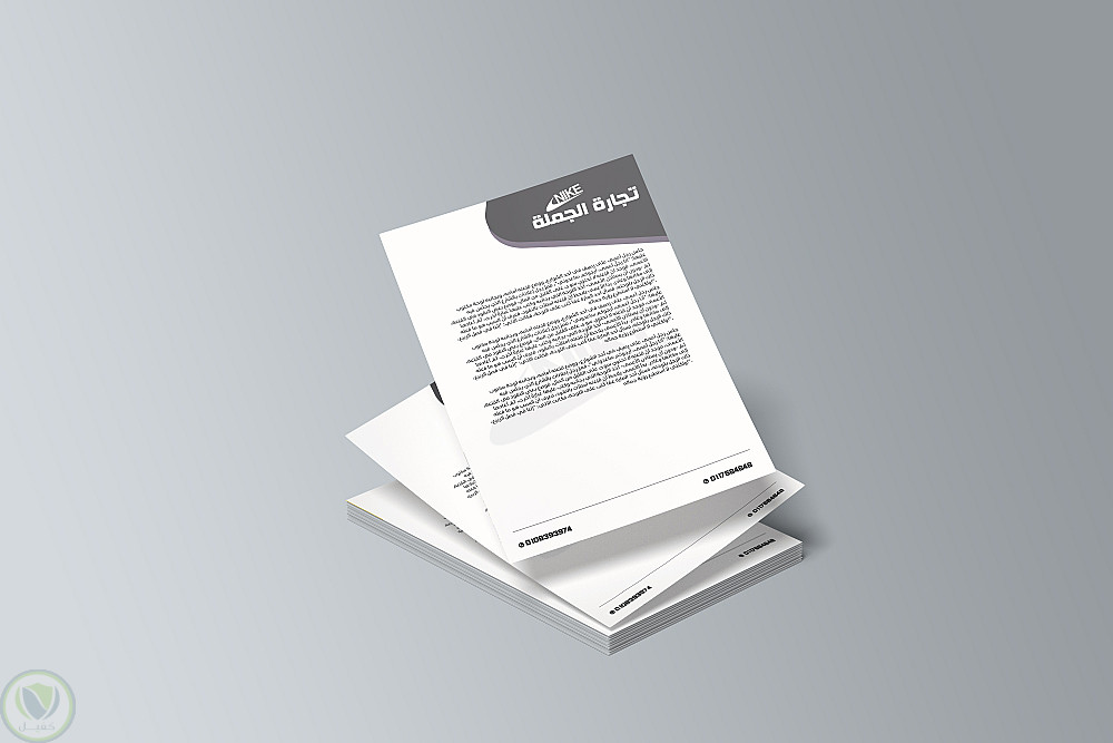 "أوراق مراسلات أنيقة ومتناسقة مع هوية الشركة البصرية، تجمع بين البساطة والاحترافية. تصميم يسمح بعرض الشعار والمعلومات الرسمية بوضوح، مع ترتيب متناسق للعناصر يعكس الانطباع المهني في كل تواصل رسمي."