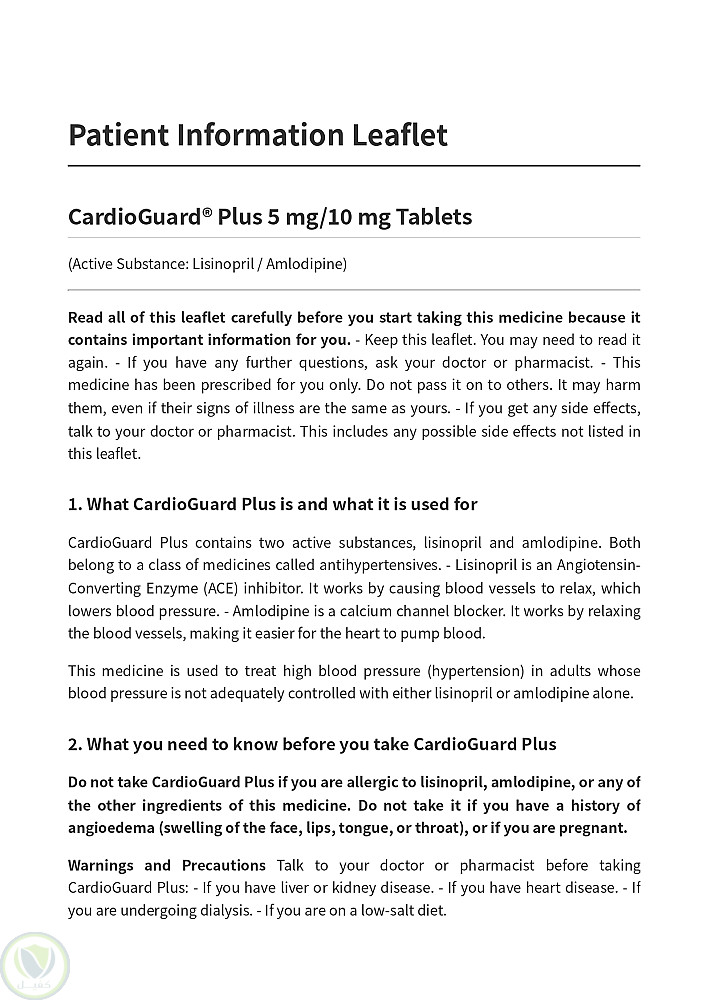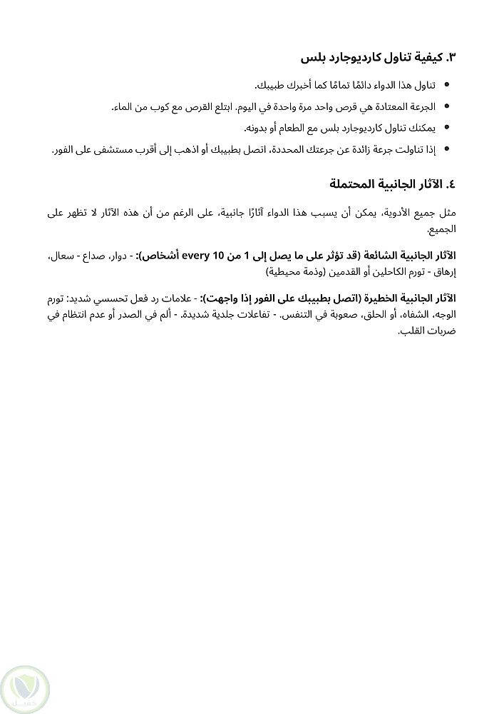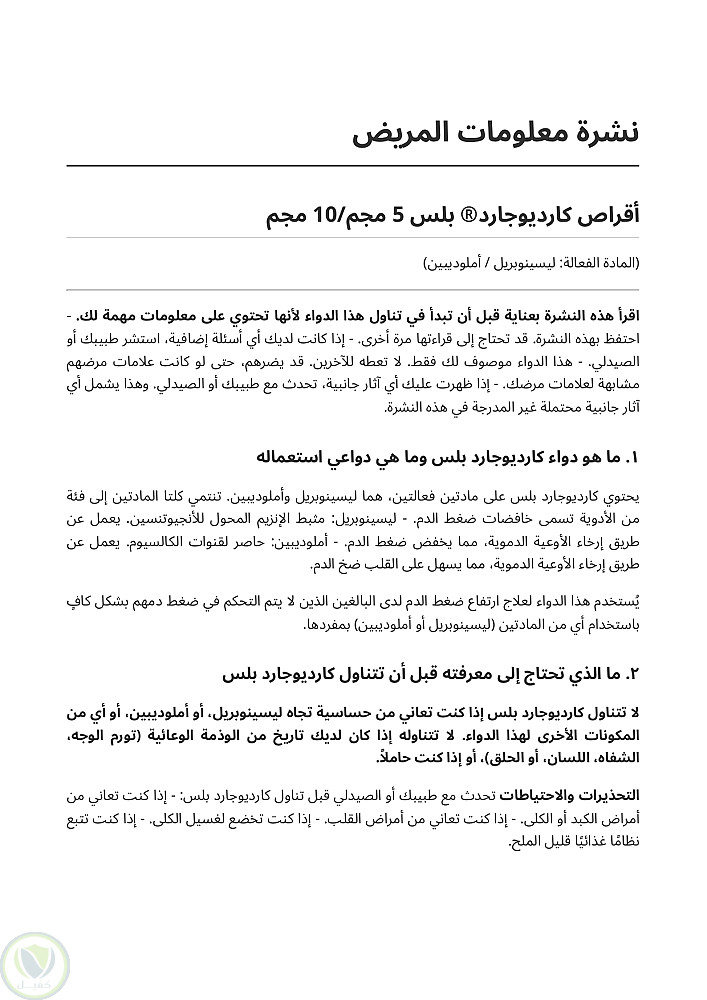 نشرة معلومات للمريض لدواء كارديوجارد بلس