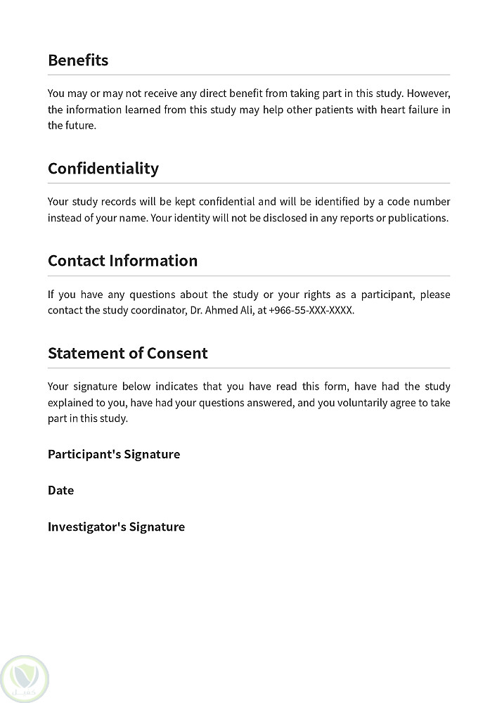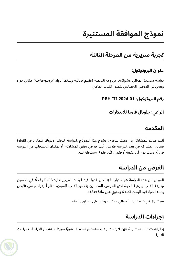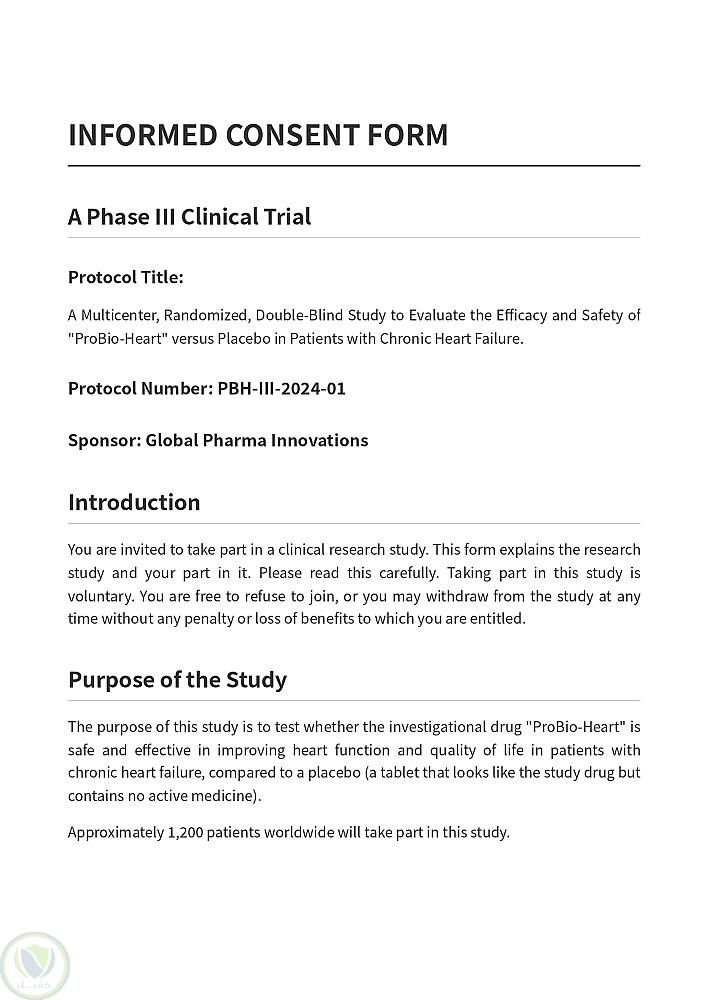 ترجمة ملف من الانجليزية يحتوي على 400 كلمة لنص عبارة عن نموذج لموافقة مستنيرة تطلب من المريض قبل عمل تجربة سريرية