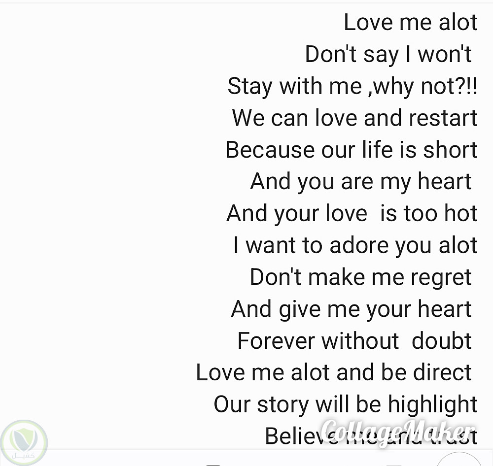 قصيدة love me alot قصيدة بالإنجليزية من تأليفي تتميز بالمشاعر الجياشة و العاطفة الدافئة و العذوبة و الرقة و بها موسيقى رائعة تطرب الآذان