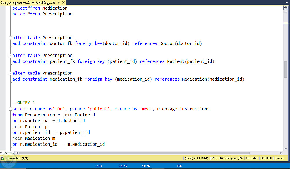 تم تصميم وتنفيذ قاعدة بيانات علائقية Relational Database باستخدام SQL لإدارة الوصفات الطبية التي تشمل الأطباء، المرضى، والأدوية. يهدف المشروع إلى تنظيم البيانات الطبية بشكل فعال وتسهيل استخراج المعلومات المهمة.